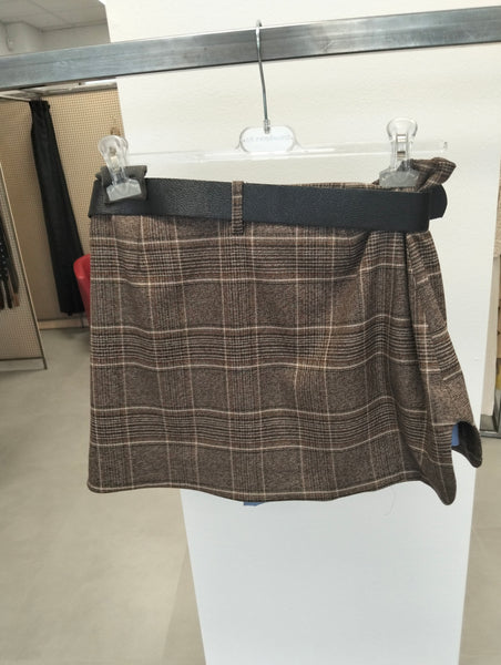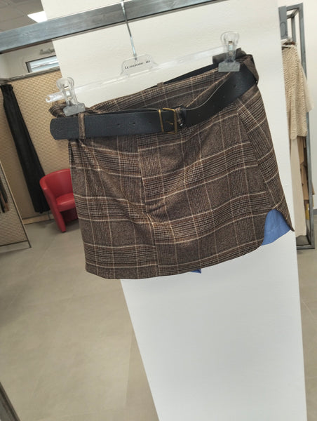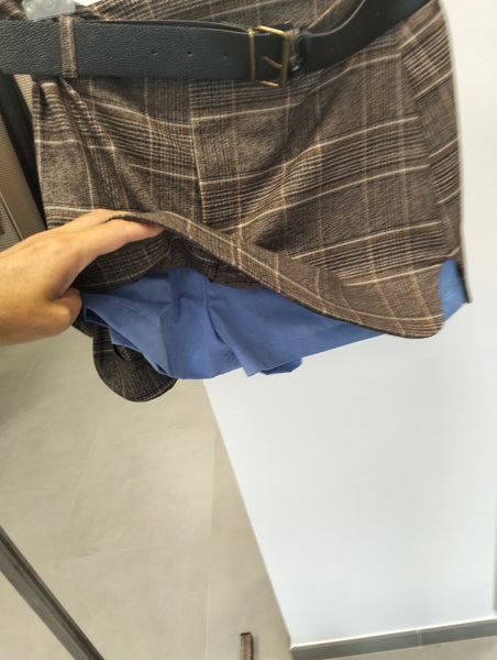 Gonna quadretti lumina con pantaloncino in cotone sotto nel colore celeste