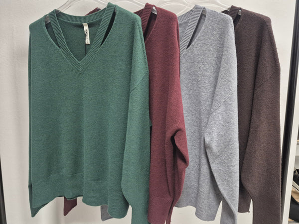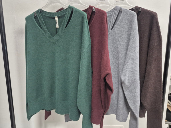 Maglioncino scollo a V con aperture clavicole
