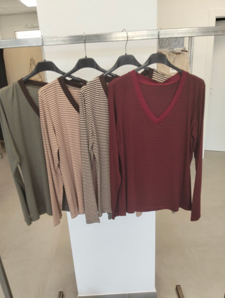 T shirt manica lunga righe scollo a V
